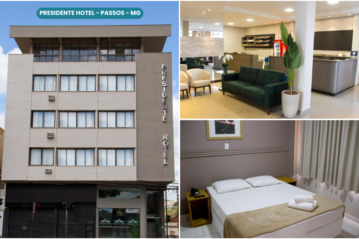 O Presidente Hotel é uma opção de hospedagem 3 estrelas localizada no centro de Passos (MG).