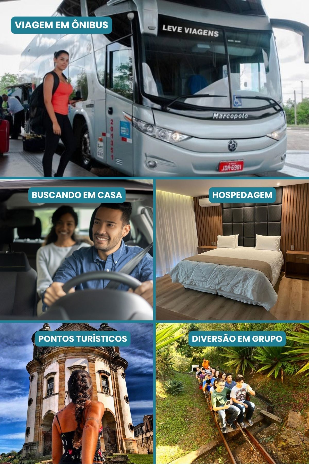 • Viagem em ônibus de turismo;