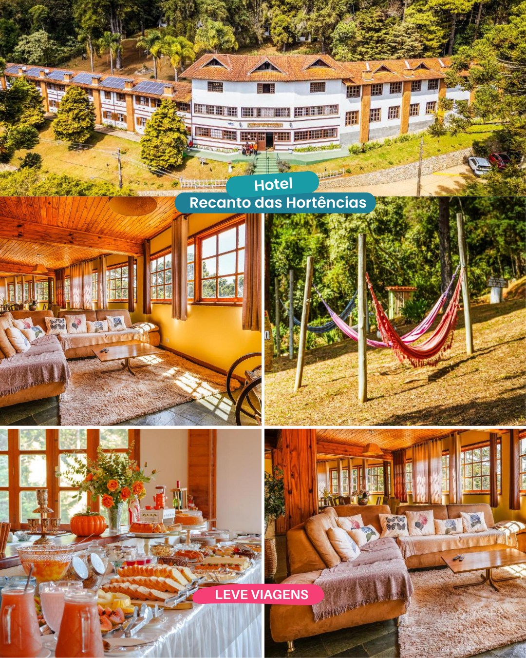 - Hospedagem no Hotel das Hortências (ou similar) com café da manhã;