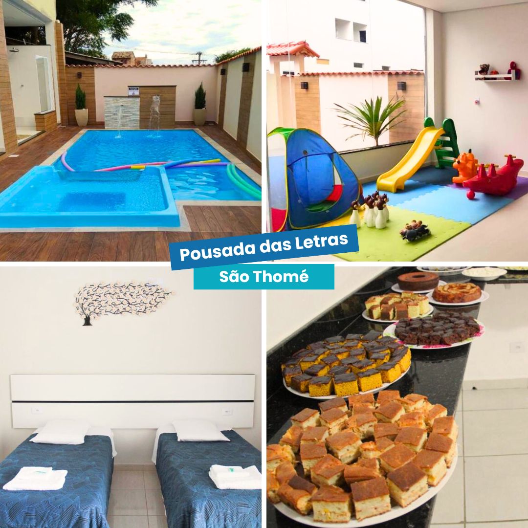 A Pousada das Letras fica localizada bem no centrinho de São Thomé, a poucos metros a pé dos principais cartões postais como a Igreja de Pedra, Igreja Matriz, Gruta São Thomé, Pirâmide e todo comercio e gastronomia da região.